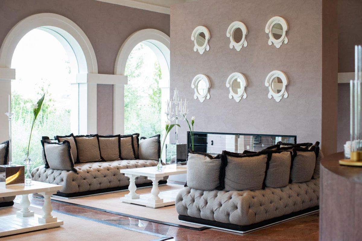 La Hall è il punto focale per chi entra o desidera accomodarsi al bar: le sedute, soffici ed eleganti, trasformano lo spazio da semplice passaggio a luogo da vivere.
