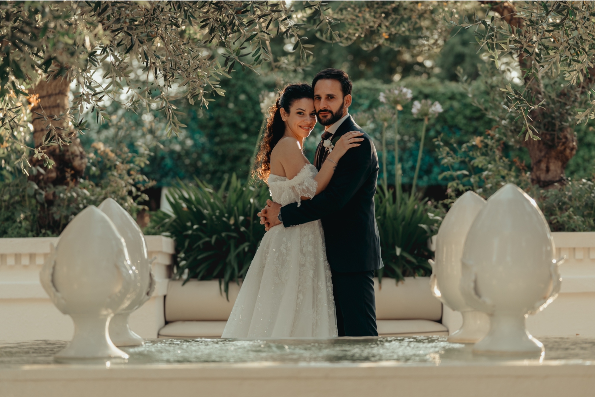 Gli specchi d’acqua, l’ombra degli ulivi secolari e i divani bianchi invitano al relax.