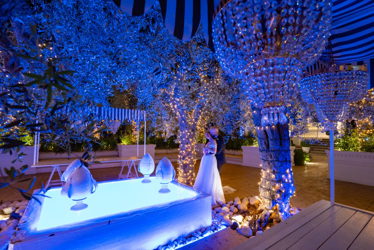 Di sera, le mille lucine accendono l’atmosfera, trasformando lo spazio in un luogo suggestivo.